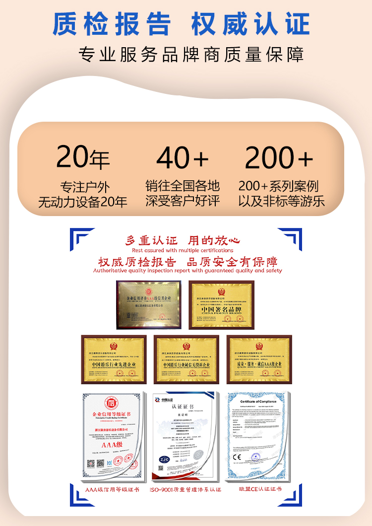 每一條生產(chǎn)工序都會監(jiān)控到位,從設(shè)計方案、選材、用材、生產(chǎn)過程都全方位管理,確保生產(chǎn)的戶外游樂設(shè)施是安全并具備實用性的,戶外游樂設(shè)施最明顯的優(yōu)點就是愉悅身心,讓成千上萬的孩子和家長在這里忘記煩惱。對于整個場地來講,戶外游樂設(shè)施也是園區(qū)核心競爭力的體現(xiàn),園區(qū)是否足夠吸引人,戶外游樂設(shè)施是重要一環(huán)。